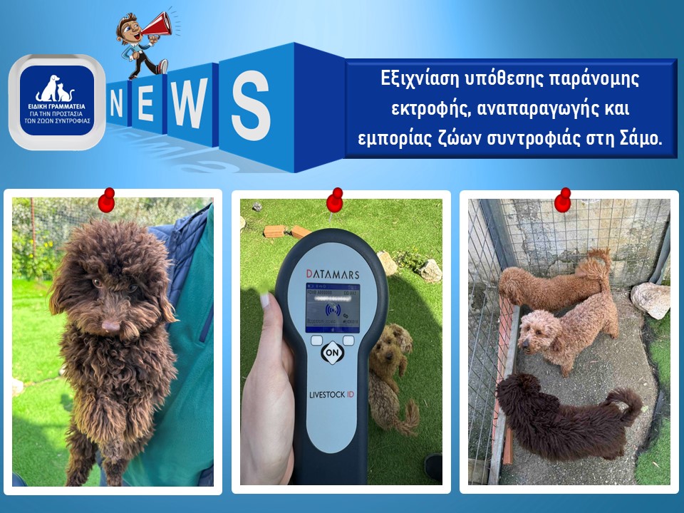 Εξιχνίαση υπόθεσης παράνομης εκτροφής, αναπαραγωγής και εμπορίας ζώων συντροφιάς στη Σάμο Στις 9 Φεβρουαρίου 2026, η Ειδική Γραμματεία για την Προστασία των Ζώων Συντροφιάς διαβίβασε τεκμηριωτικό υλικό στο Αστυνομικό Τμήμα Σάμου για καταγγελία που αφορούσε υπόθεση παράνομης εκτροφής, αναπαραγωγής και εμπορίας σκύλων ράτσας Poodle Caniche. Μετά από ενδελεχή έρευνα και συλλογή στοιχείων από τις αστυνομικές …