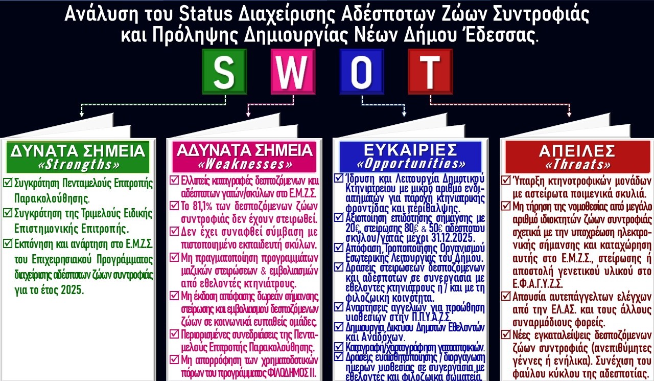 📍 Μέχρι σήμερα, ο Δήμος Έδεσσας έχει σημειώσει πρόοδο. Παρά τις εξακολουθούμενες προκλήσεις στη διαχείριση των αδέσποτων ζώων, διαθέτει τα θεμέλια , τη θέληση και τη δυναμική για ακόμα μεγαλύτερη εξέλιξη.