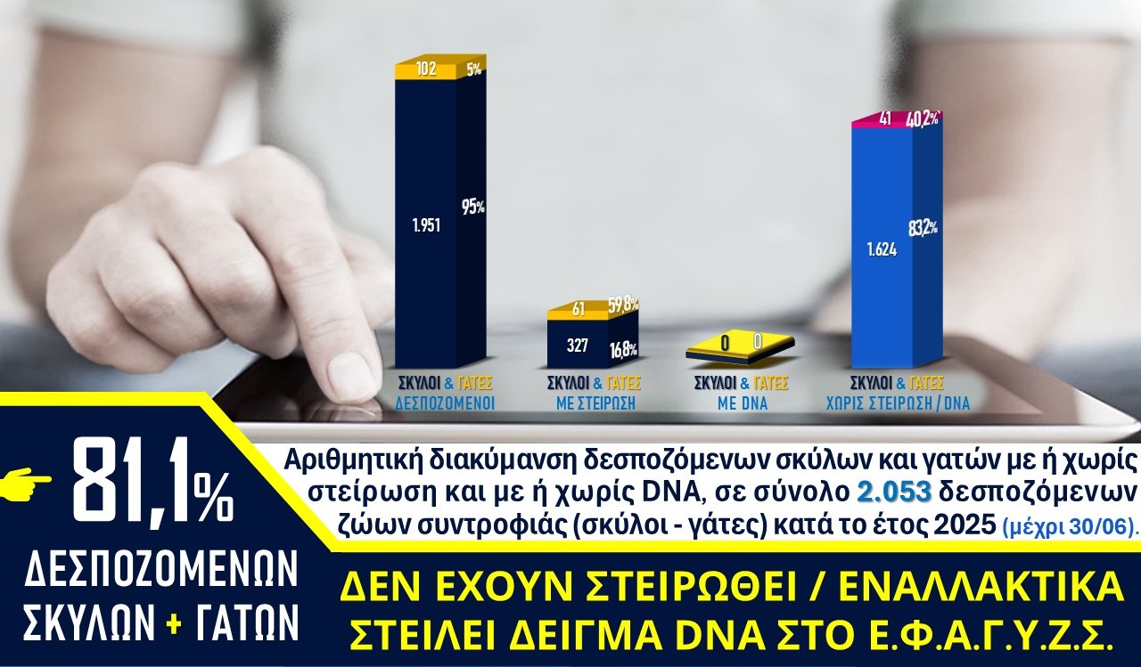 📌 Η άμεση ενεργοποίηση των αρμόδιων μηχανισμών και η ουσιαστική συμμετοχή του τοπικού Αστυνομικού Τμήματος αλλά και της Δασικής Υπηρεσίας στους ελέγχους είναι καθοριστικής σημασίας. Η τακτική, στοχευμένη και αυτεπάγγελτη διενέργεια ελέγχων για την ύπαρξη ηλεκτρονικής σήμανσης και την καταχώρισή της στο Ε.Μ.Ζ.Σ. αποτελεί θεμελιώδη προϋπόθεση για την αποτελεσματική εφαρμογή της νομοθεσίας, δεδομένου ότι οι καταγραφές δεσποζόμενων σκύλων στο ΕΜΖΣ είναι χαμηλότερες του αναμενόμενου (Εικόνα 7).