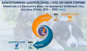 (Εικόνα 4) Το ποσοστό αυτό είναι υψηλό και αποτυπώνει τον κίνδυνο δημιουργίας νέων αδέσποτων ζώων. Καθίσταται αναγκαία η ενίσχυση των προληπτικών δράσεων και των αυτεπάγγελτων ελέγχων από την ΕΛΑΣ και τη Δημοτική Αστυνομία.