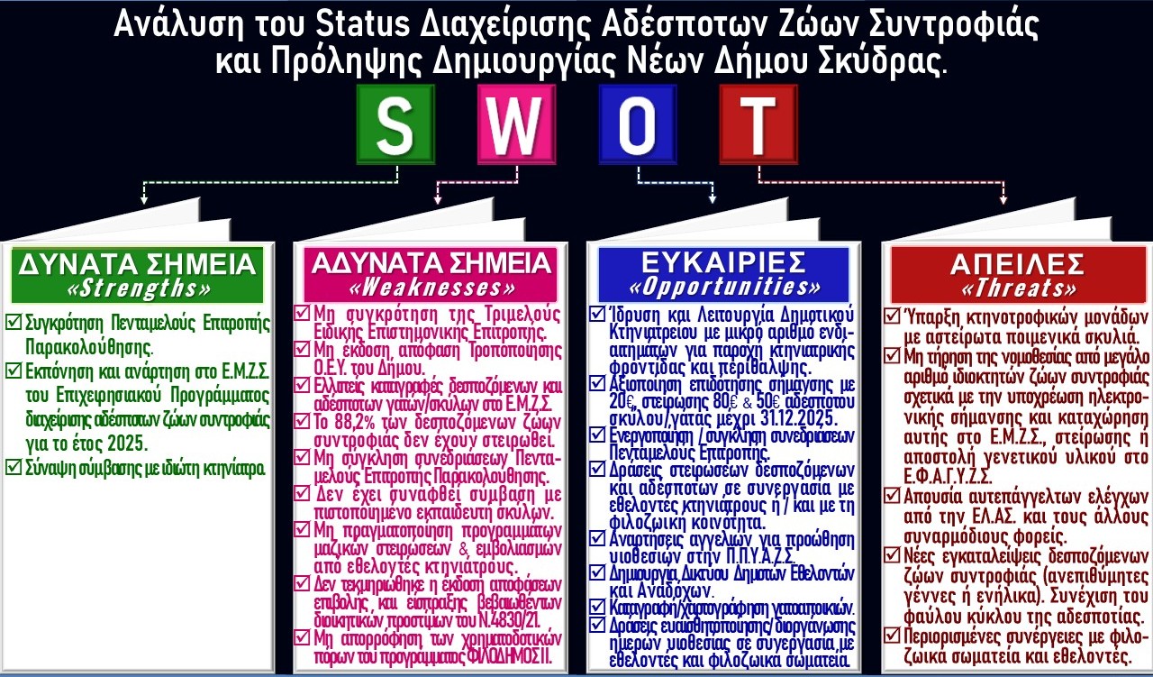 Συνολικά, ο Δήμος οφείλει να κάνει αλλαγές σε ό,τι αφορά στη διαχείριση των αδέσποτων ζώων συντροφιάς. Η σημερινή ημέρα σηματοδοτεί μια νέα αρχή, την οποία η Ειδική Γραμματεία θα στηρίξει και θα παρακολουθεί στενά μέσα από τις επόμενες ενέργειες του Δήμου.